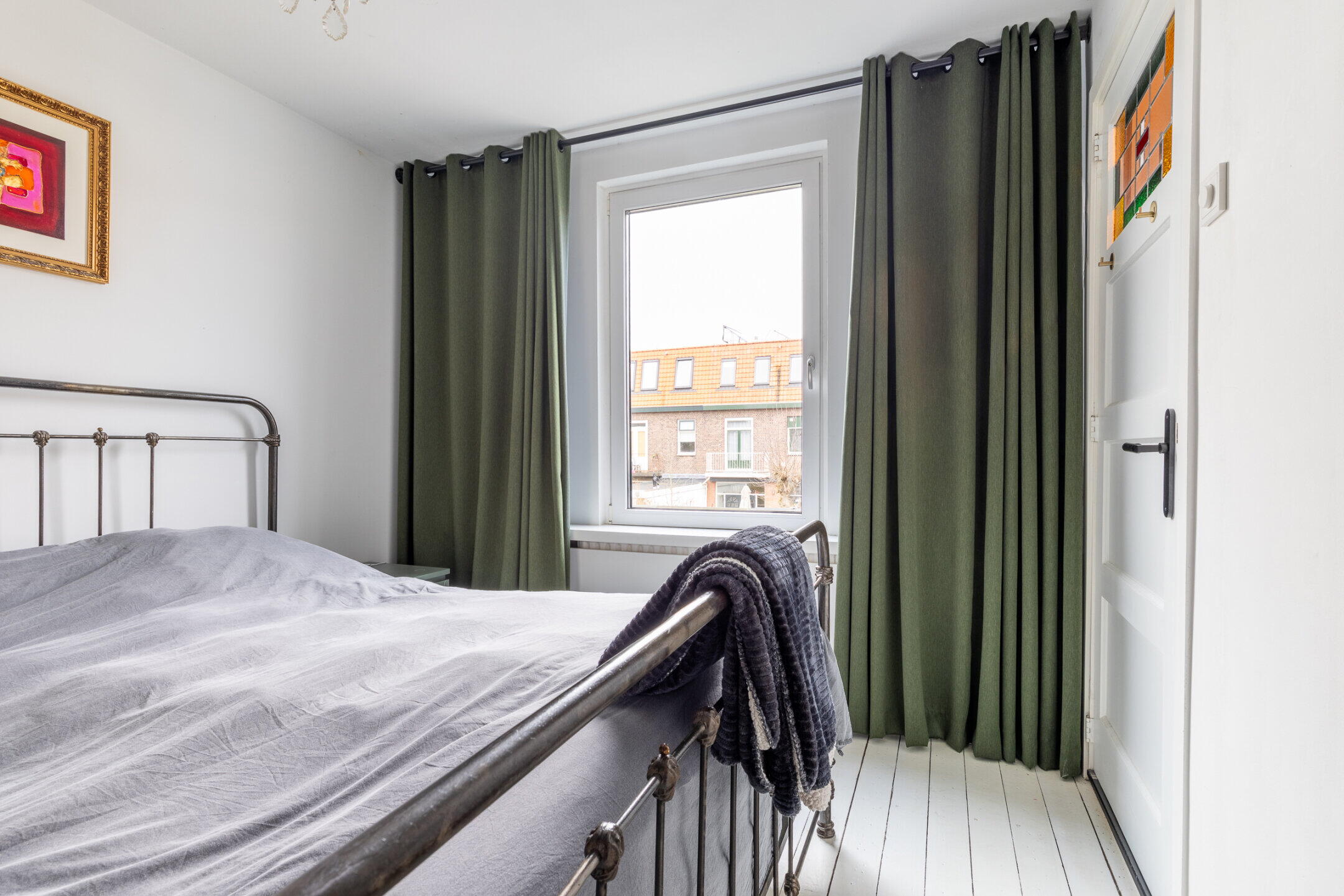 Slaapkamer 2 (ca. 4.03 x 2.97m) is gelegen aan de achterzijde van de woning. De slaapkamers zijn voorzien van houten vloerdelen en een strakke wand- en plafondafwerking.
