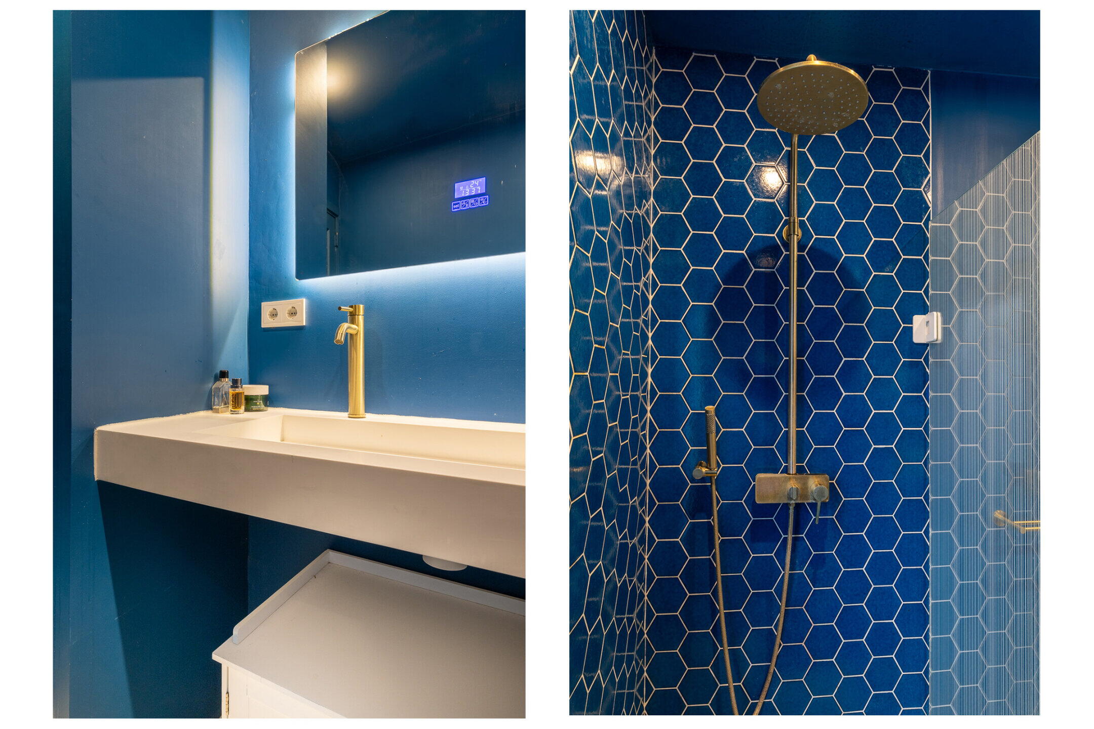 - Dubbele wastafel, inloopdouche